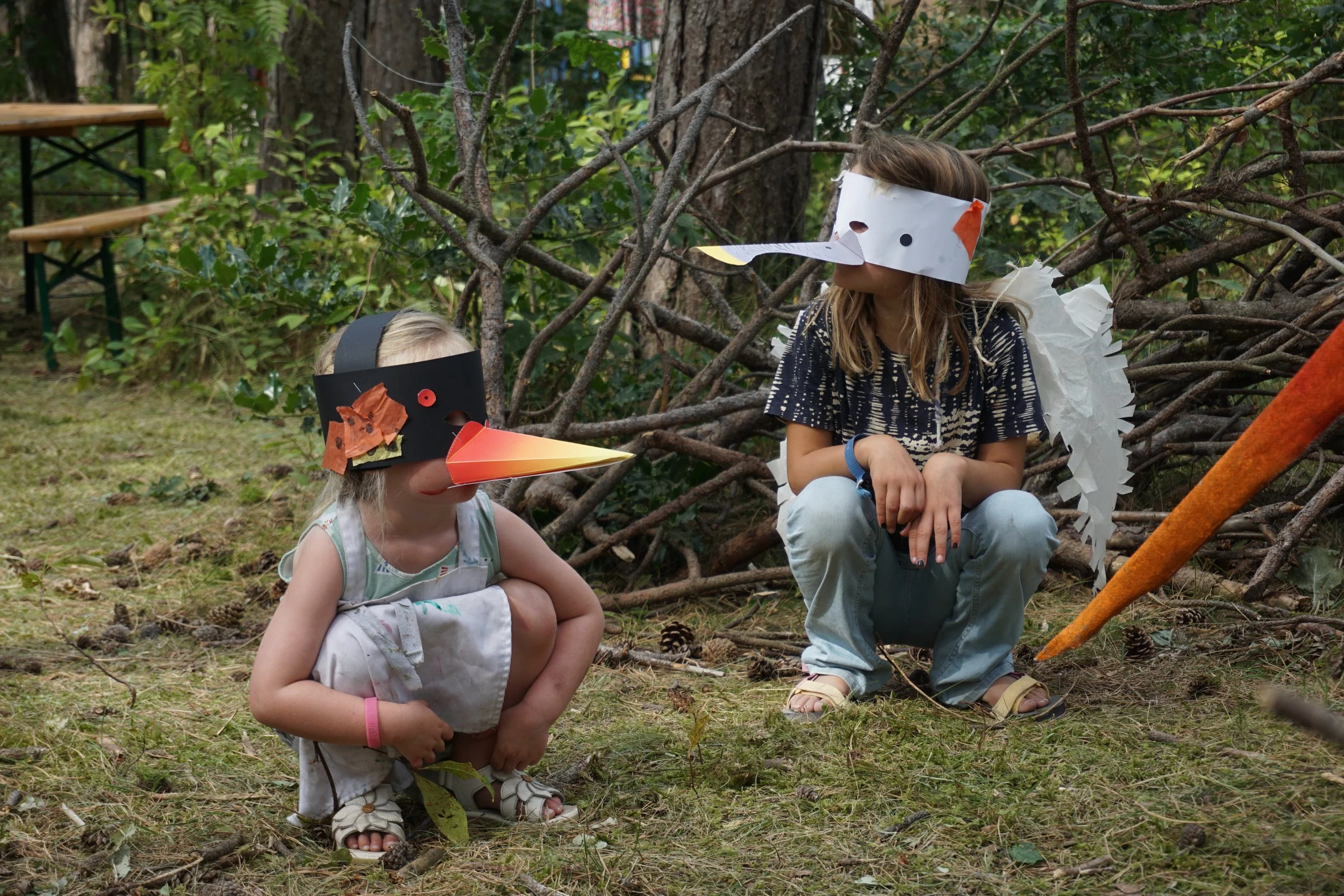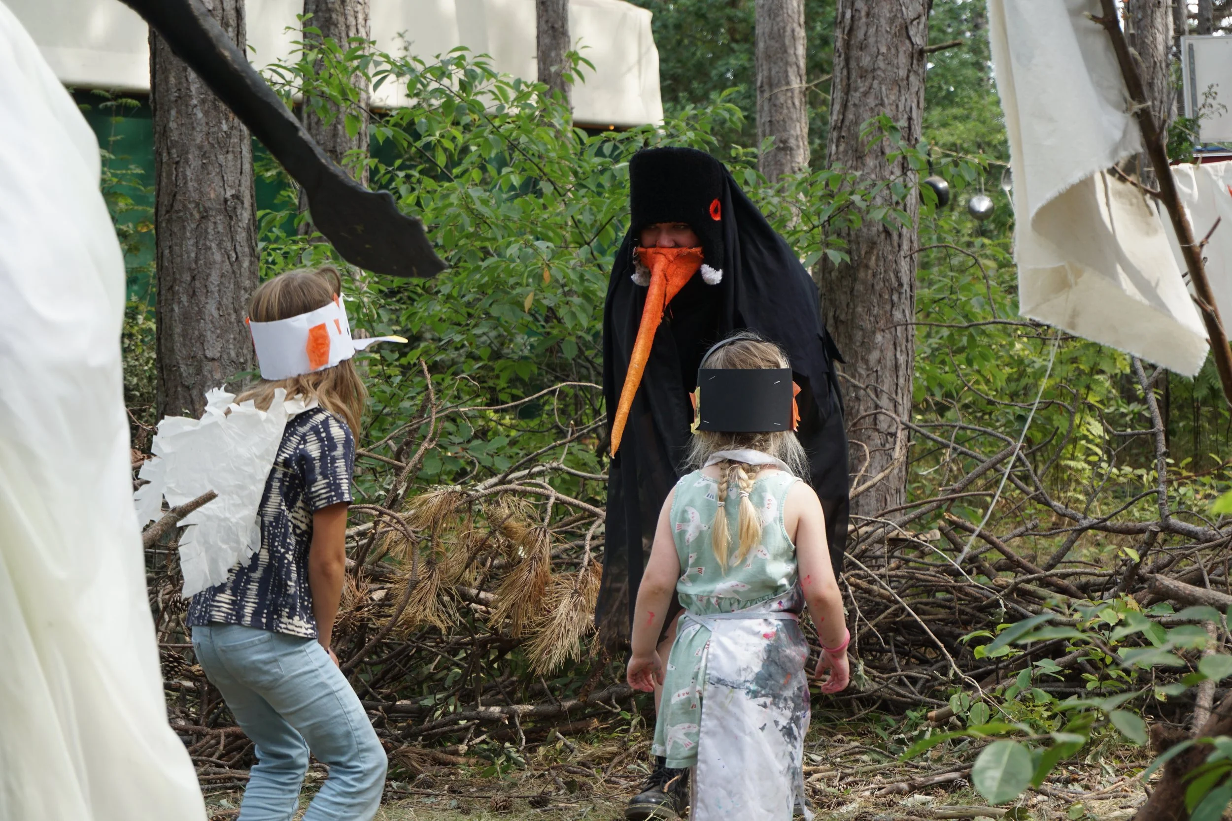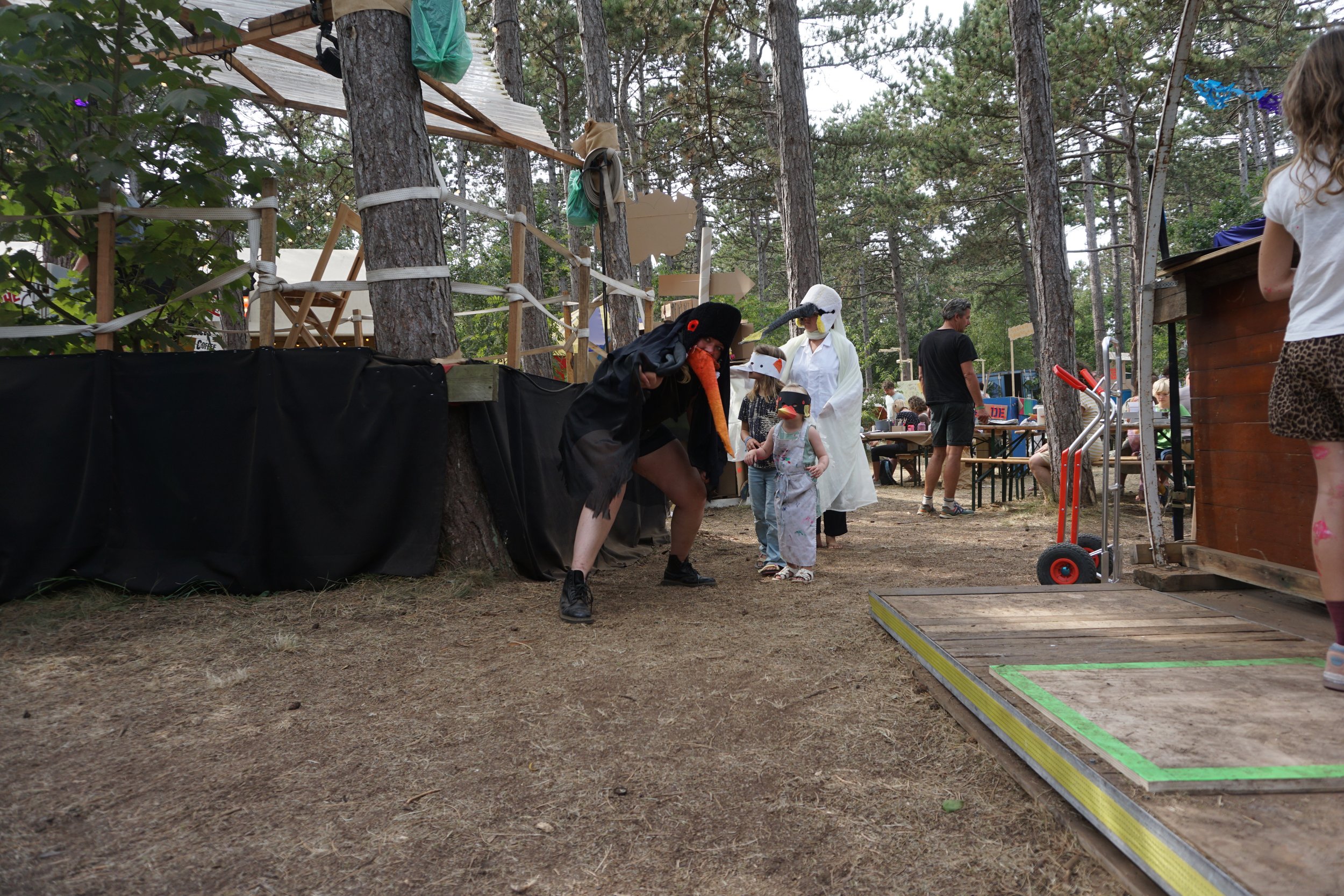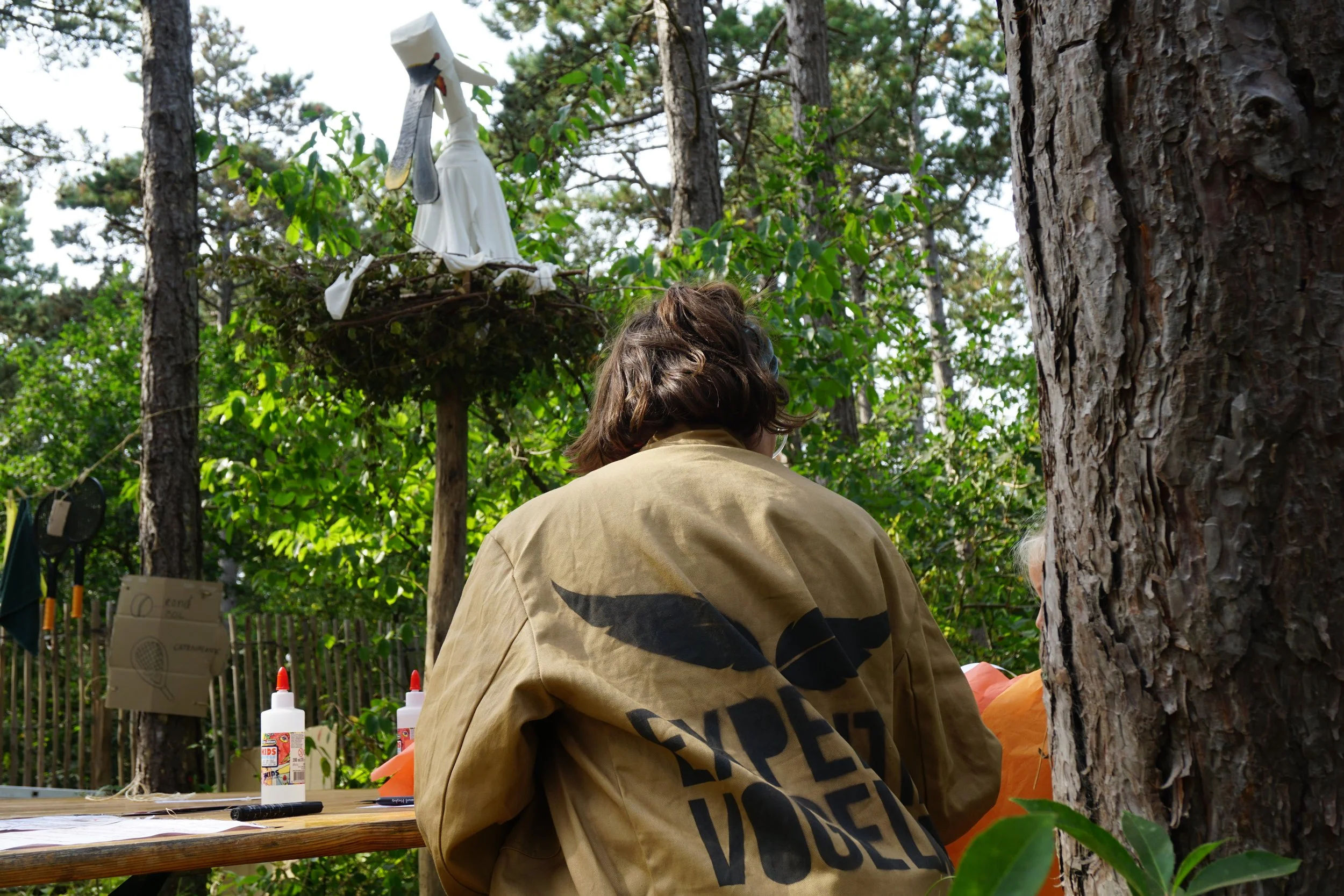 During the festival, we, as Professor Spoonbill and Oystercatcher Sieb, sought the help of the young visitors to study humans from a bird's perspective. They were transformed into oystercatchers or egrets themselves and set out on their investigation. We began at the nest, which served as our home base. From there, we took flight over the festival grounds to observe humans from a bird's-eye view. It was fascinating to see how quickly the children embraced this concept. They observed things like "candy is a type of fish, but sweet," "humans watch sounds (a concert)," and even spotted an "upside-down nest" (a Ferris wheel).
